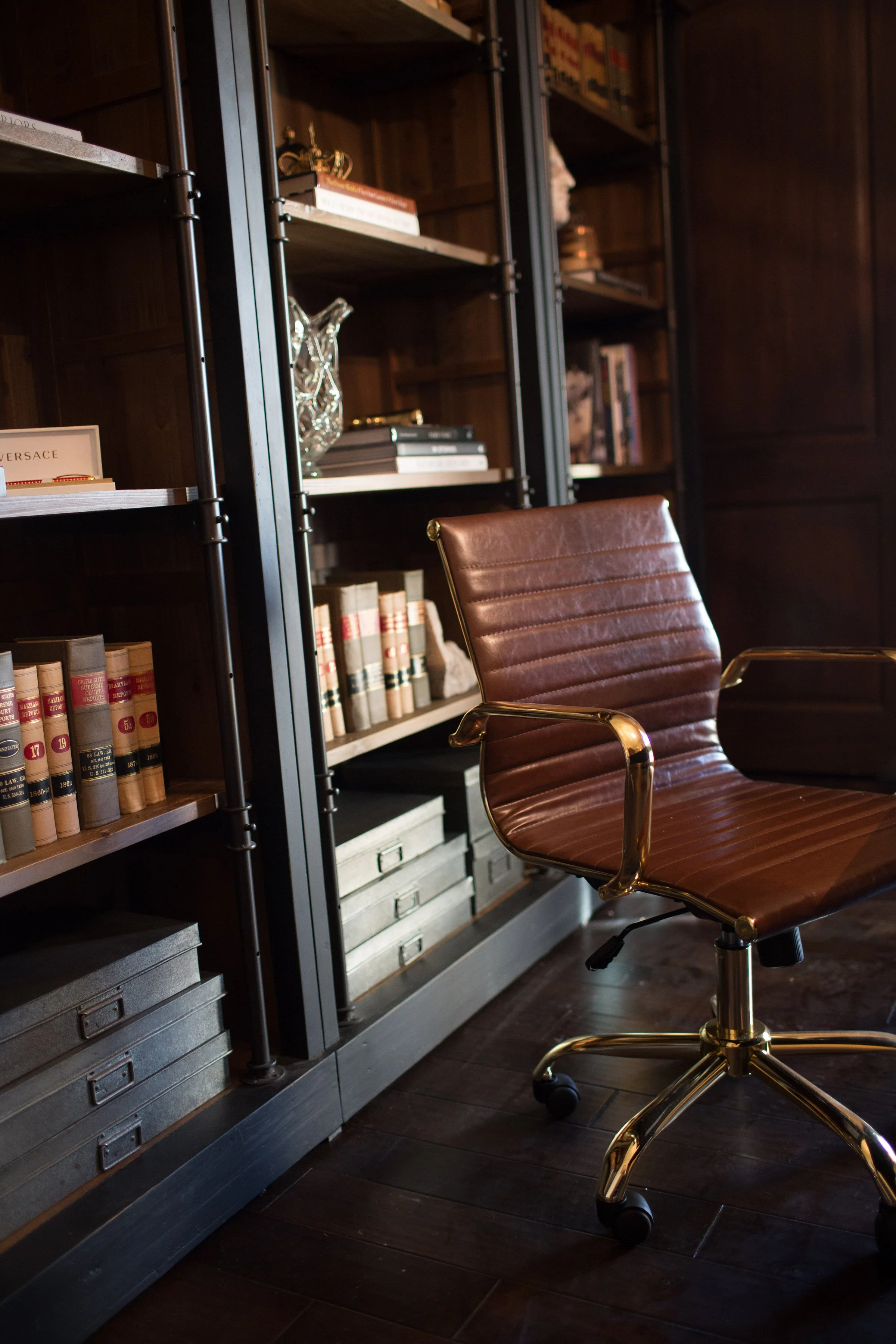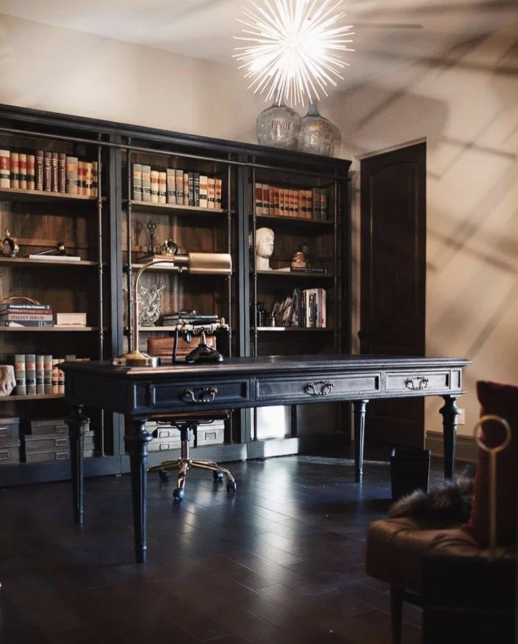 Dark and Handsome TRANSITIONAL MASCULINE DEEP, RICH HUES INSPIRE COURAGE AND STRENGTH IN THIS SOUTHERN CALIFORNIA HOME OFFICE SPACE. GET IN TOUCH→